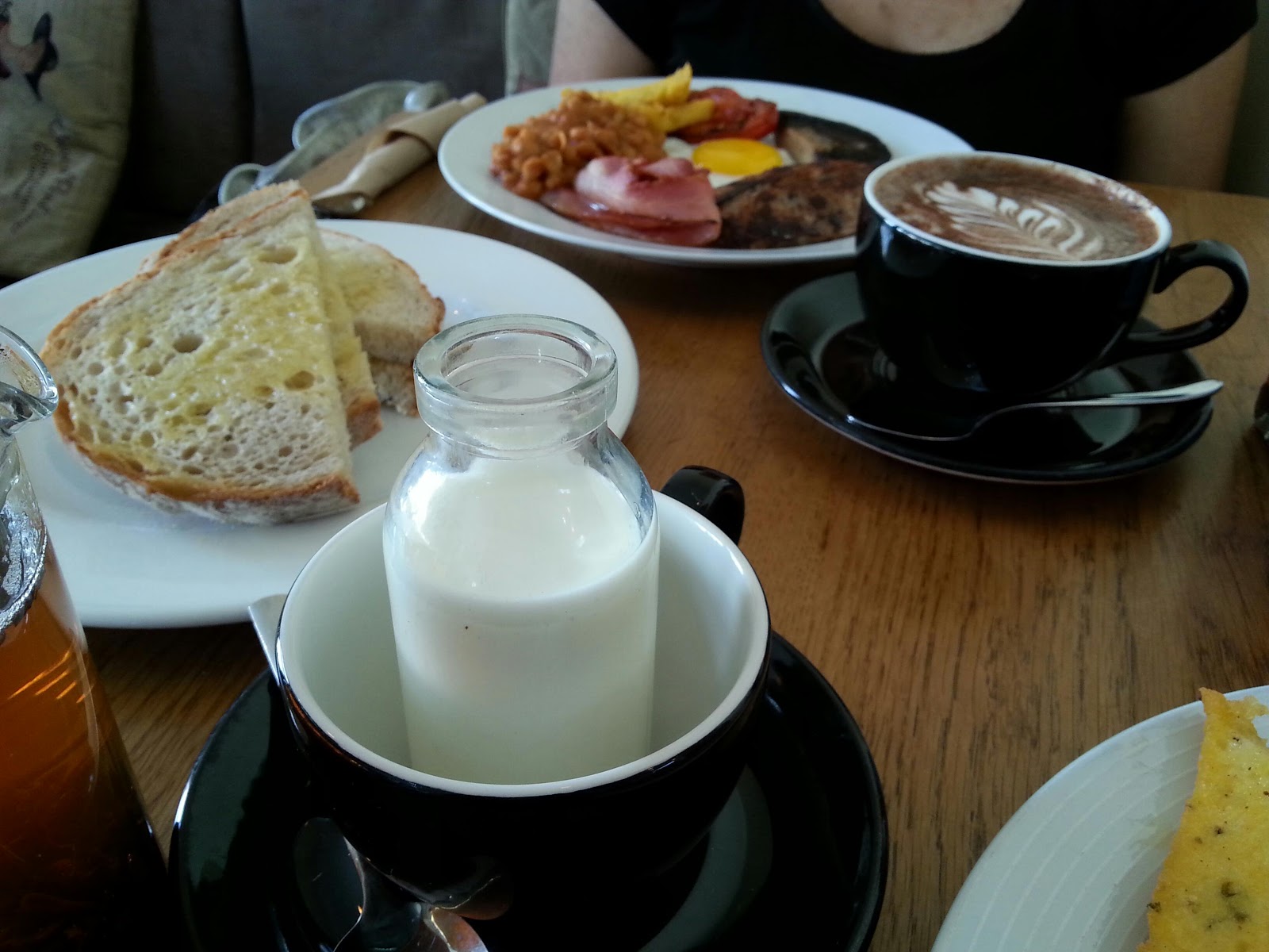 I admit, I wasn't very adventurous with my food choice, opting for an English breakfast. But the fry up was not without a twist. The bread was Sourdough (which was freshly baked and tasted incredible), the standard hash browns were replaced with polenta triangles and the baked beans were homemade and had herbs in.